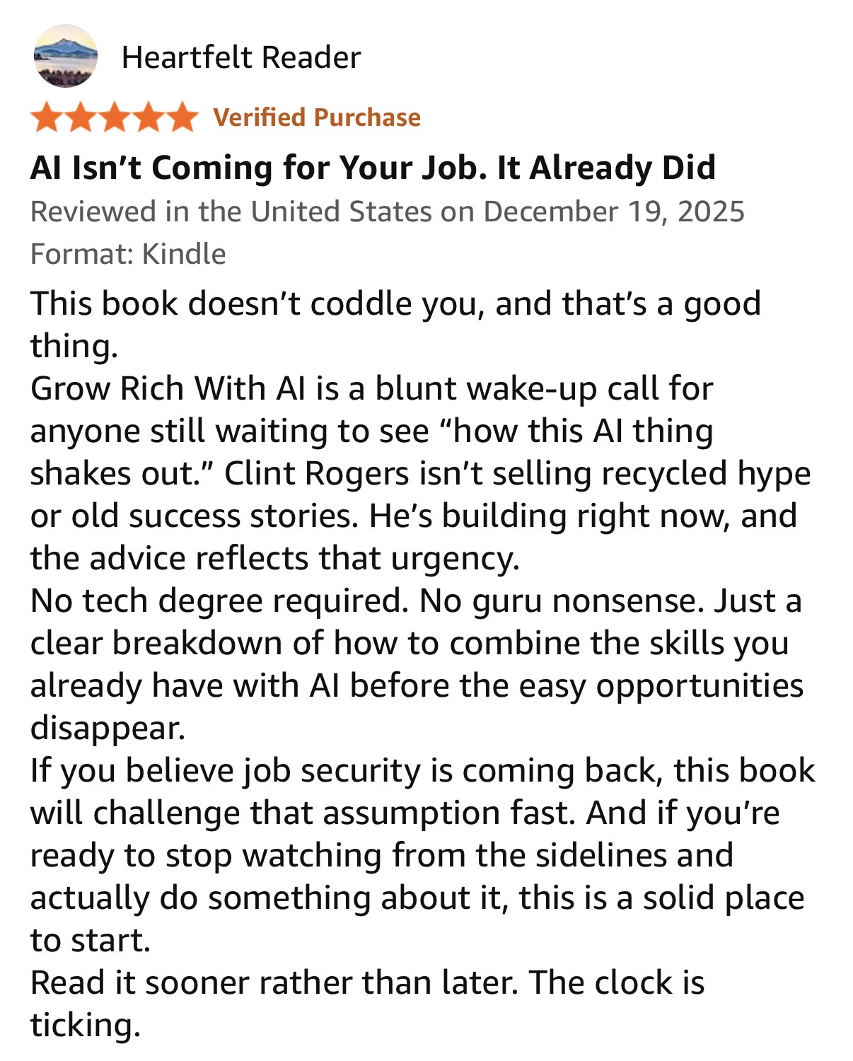 You aren't learning from a "guru." You are building alongside Clint Rogers, a Techstars Alum whose startups have been supported by Google and HubSpot. As the author of Grow Rich With AI, Clint specializes in showing entrepreneurs how to build high-utility AI assets. This isn't a lecture; it's a live construction site. He spent the last 3 years documenting and refining a private methodology into the framework you’ll learn in the 48 hours.